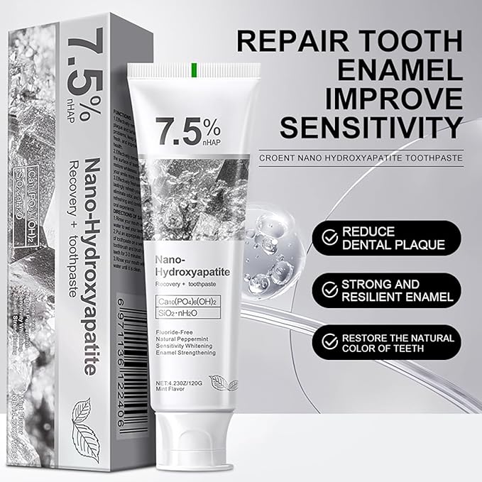 7.5% Hydroxyapatite ToothpasteAppropriate for Sensitive Teeth & Tooth Strengthening, Tooth Repair, Gentle Mint Fluoride-Free Formula for Daily Use (120g/4.23oz)
