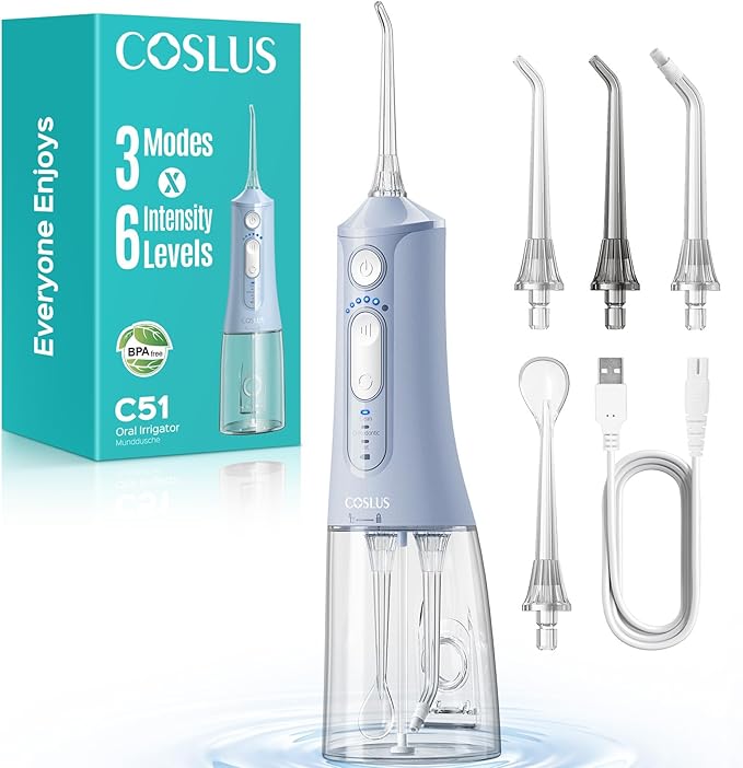 - Advanced Safety & Reliability Performance: Meticulously developed by the COSLUS R&D team, this oral irrigator is committed to creating high-performance and safety standards. Built to last up to 3 years with typical use. The water teeth pick reliable construction provides unwavering confidence for your daily routine, ensuring peace of mind, to support long-term oral health and help you achieve a consistently fresh smile