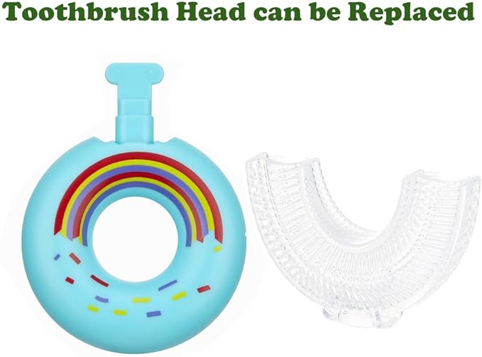 - 【 u shaped design head】Food Grade U- Shaped Soft Silicone Brush Head,360° soft silicone design all around the gum to clean up the teeth easily.Training toothbrush for kids to use.