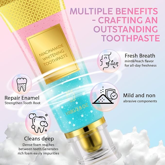 Niacinamide Whitening Toothpaste 2Pack - Gum Care Strengthen, Tooth Enamel, Prevent Cavities, Fresh Breath, Gentle & Non-lrritating, Fluoride-Free