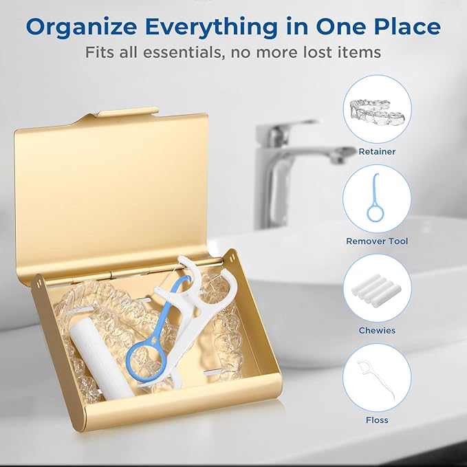 - Secure Closure & Anti-Spill Design: Features mechanical clasp snaps firmly flush against the denture container, locking your aligners securely inside—no magnet failures that cause accidental spills. All depth in base with 3 high walls prevent aligner from sliding out when opened (unlike shallow base design). Precision-polished edges won’t scratch belongings in your bag. Hinges are reinforced aluminum, eliminating plastic breakage points. Guarantees your appliance stays fixed and protected.