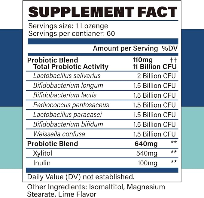 Oral Probiotics for Mouth Bad Breath - 11 Billion CFU Chewable Probiotics for Teeth & Gums, Dry Mouth, Gum Restore, Fresh Breath, Chronic Halitosis & Gut Health, 60 Lozenges