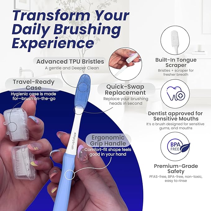 - EXTRA-SOFT BRISTLES FOR SENSITIVE GUMS: Ultra-soft TPU bristles gently clean teeth while minimizing irritation—ideal for sensitive gums, bleeding gums, enamel protection, and post-dental care.