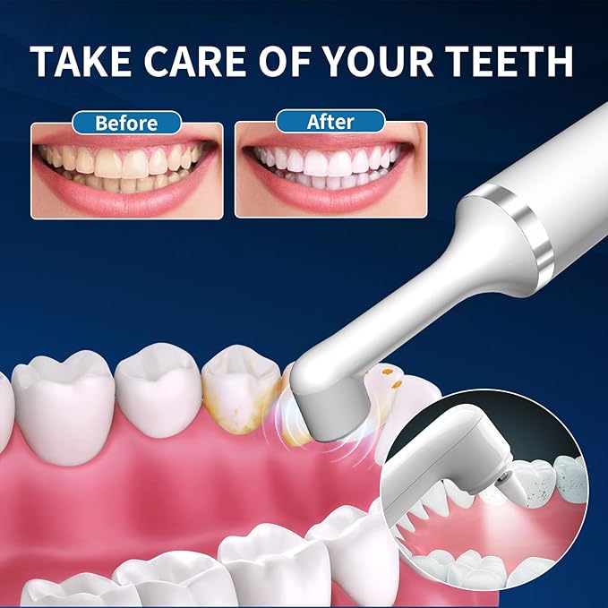 - Five Multi-Functional Brush Heads: Silicone rub head and Flattop brush head remove dirt and calculus from the surface of teeth and are suitable for daily care and cleaning. It is equipped with five different replacement heads that provide various functions and effects. Polishing cup head smooth and polish the surface of your teeth to make them more polished and brighter. Pointed brush head and Umbrella polishing cup head remove residue and food debris between teeth.