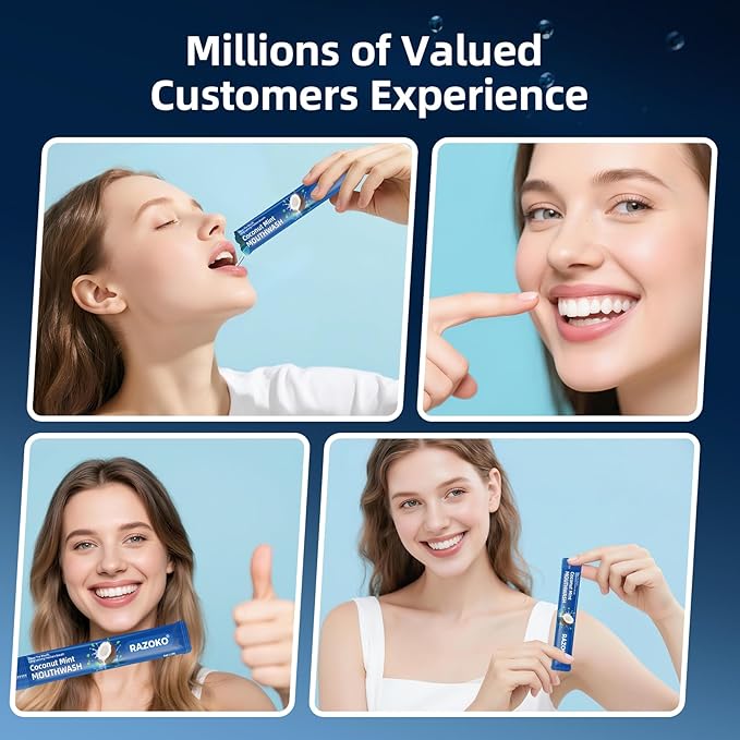 RAZOKO Mouthwash Travel Size-Portable Fresh Mint Packets,Alcohol & Fluoride Free Mouthwash,Disposable Oral Care Strips (0.41 Fl Oz (Pack of 20), Coconut)