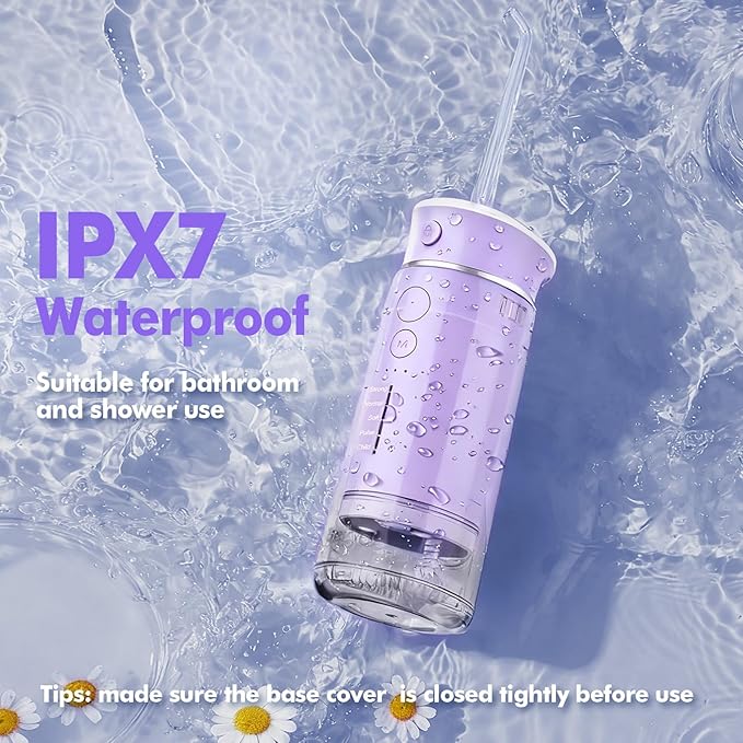 - IPX7 Waterproof & Durable: Bezvoi cordless water flosser features an IPX7 waterproof rating and upgraded motor, ensuring long-lasting durability as your reliable companion for oral care. With its waterproof design, you can conveniently use this flosser while showering and bathing. (Ensure the charging port's silicone cover is fully closed to prolong product lifespan)