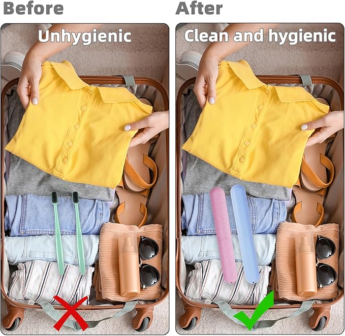 - 【Convenient Carrying】The travel toothbrush case is easy to carry and can be easily placed in a bag or suitcase, making toothbrush container protector cover perfect for use at home. Toothbrush holder can also be carried around or used for travel, school, camping, and other outdoor activities. Portable toothbrush holder box makes your life easier