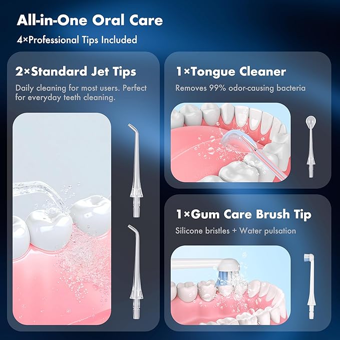 - ๐๐จ๐ฆ๐ฉ๐ฅ๐๐ญ๐ ๐๐ซ๐๐ฅ ๐๐๐ซ๐ ๐๐จ๐ซ ๐๐ฏ๐๐ซ๐ฒ ๐๐๐๐ From orthodontic cleaning for braces water flosser users to gentle care for sensitive gums, plus tongue cleaning and stain removal, this 2-pack water flosser kit covers every smile in your home.