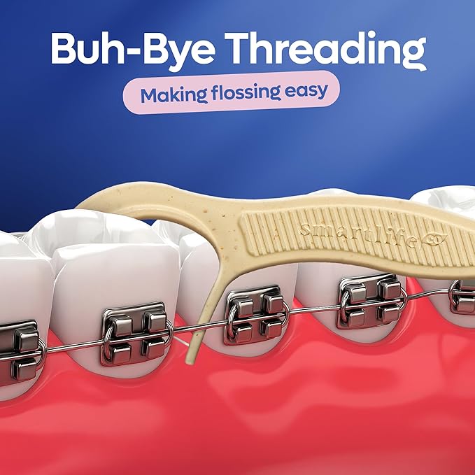SmartLifeco Flossers for Braces - Eco-Friendly Orthodontic Floss Picks for Adults & Kids | Straw Wheat Blend | Superior Anti-Shred Thread | Ortho Interdental Toothpick End | Unflavored - 160 Pack