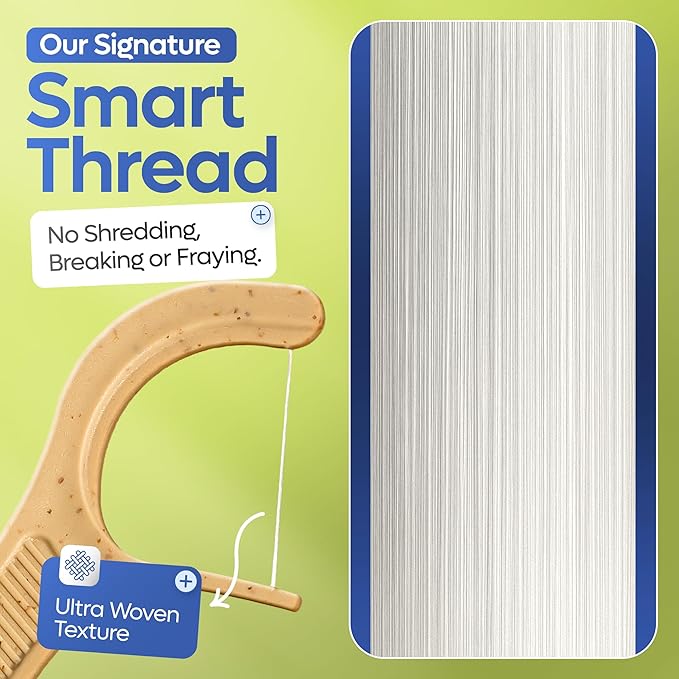 - β»οΈ ORIGINAL STRAW WHEAT BLEND: We're The First To Introduce Flossers Made from a Mixture of Straw Wheat (Gluten-Free!) and PLA, a Plant-Based Plastic Made from Renewable Resources. Even the Packaging Is Made from Recyclable Materials, Giving You the Best Floss Stick Alternative for Your Teeth.