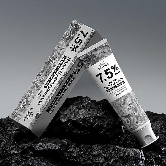 - Woadee Hydroxyapatite-Enriched Formula (Remineralizes & Whitens):Powered by advanced Hydroxyapatite technology, this hydroxyapatite toothpaste (a nano hydroxyapatite toothpaste) naturally restores and strengthens enamel while addressing oral concerns at the source. It gently lifts surface stains for visible whitening without damaging enamel and supports remineralization to help reverse early enamel demineralization, keeping teeth strong and bright.