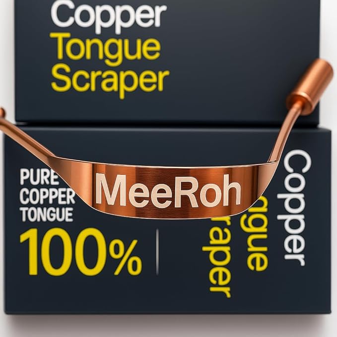 MeeRoh 100% Pure Copper Tongue Scraper Cleaner – 2 Pack – Natural Breath Freshener, Durable & Eco-Friendly Copper Tongue Cleaner