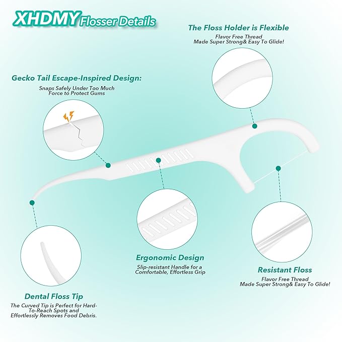 - DUAL-SAFETY FLOSS PICKS: Gentle on Gingivae, Tough on Plaque. Our break-safe pick tip is designed to snap under excessive pressure to protect delicate gingival tissue, while the shred-resistant floss ensures a smooth, effective clean every time