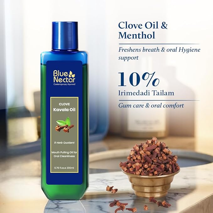 - Inspired from Kavala Gandusha Ritual: Traditional ayurvedic oral hygiene was practised using authentic Clove Mouth Pulling Oil that works as a natural mouth wash and bad breath remover