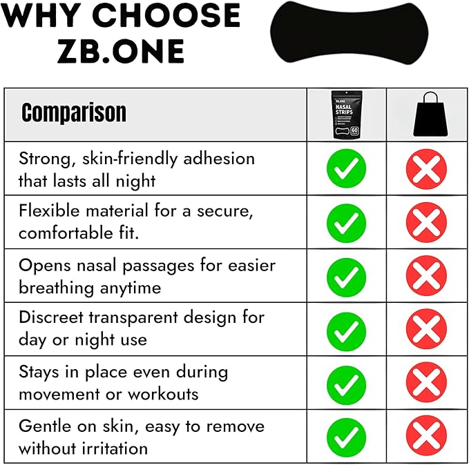 - Deeper Sleep: Extra-strength spring-like bands maximize airflow and reduce snoring from blocked nasal passages. With 50% stronger support, nasal strips for sleeping improve rest. ZB.ONE nasal breathing strips help you wake refreshed.