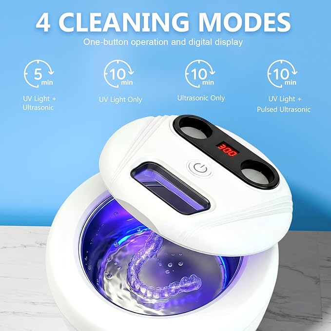 - 🌊 Deep-Clean Sonic Power: Powered by advanced 45,000Hz ultrasonic technology, this cleaner generates millions of intense micro-bubbles that dive deep into every crevice of retainers, aligners, and mouthguards. It effectively lifts away stubborn plaque, stains, and residues, restoring your items to a like-new shine with zero manual effort.