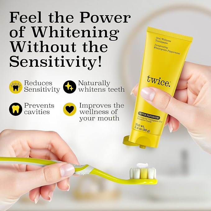 Twice Twice Oral Wellness Toothpaste with Fluoride – Natural Anticavity Toothpaste for Sensitivity Relief, Whitening & Fresh Breath, Wintergreen Peppermint, 3.4oz, 3 Pack