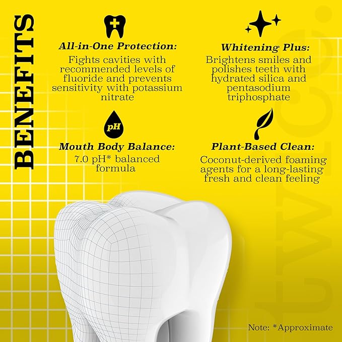 - BALANCED CARE FOR TOTAL WELLNESS: Protect your smile with fluoride and potassium nitrate to fight cavities and reduce sensitivity, while the 7.0 pH balanced formula supports your mouth’s natural balance for complete oral wellness.