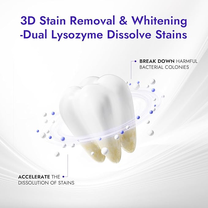 - 3D Stain Removal: Get professional toothpaste whitening with our 3D system. Dual silica & pumice polish gently. Sodium phytate from rice bran tackles tough coffee, tea, and smoke stains,while dual Lysozyme quickly break them down.