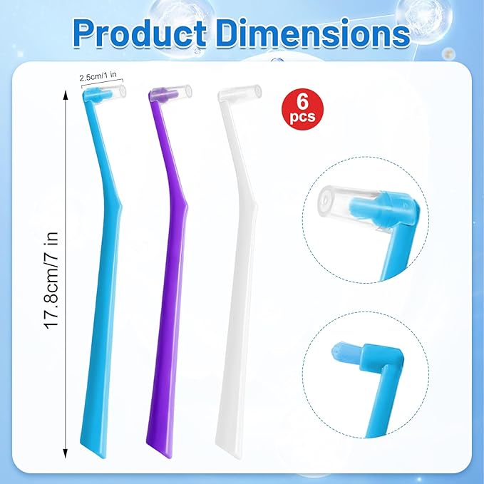 - SMALL SINGLE TUFT HEAD: Each toothbrush features a compact single tuft head that provides precise cleaning for plaque removal around braces, archwires, crowns, implants, gum lines, and wisdom teeth. Ideal for focused care where standard toothbrushes cannot reach.