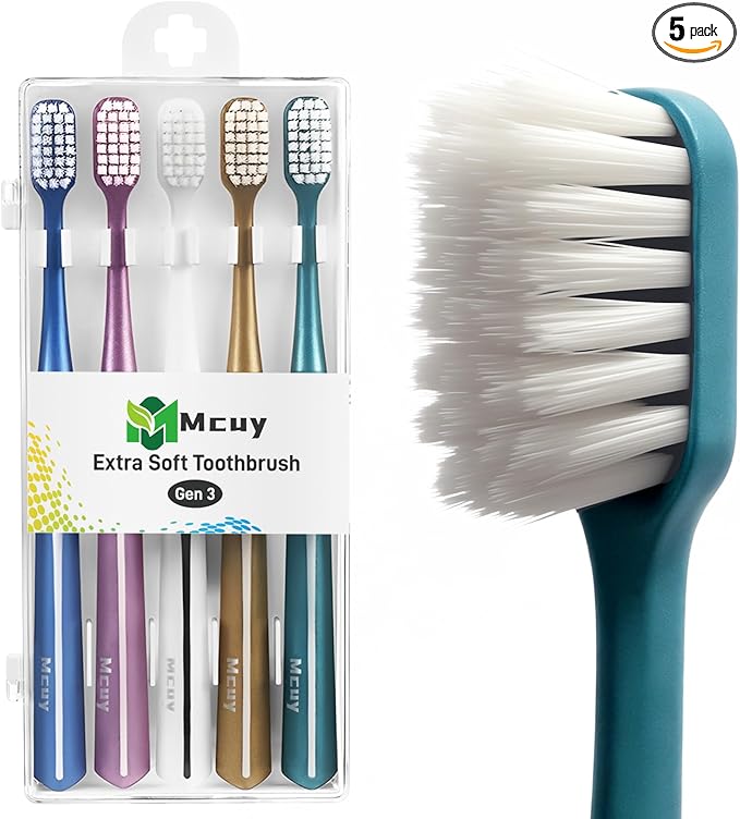 Ultra Soft Toothbrush for Adults Sensitive Teeth & Gums | Gentle Plaque Removal | Non-Slip Ergo Grip Toothbrushes with Travel Case, 5 Count