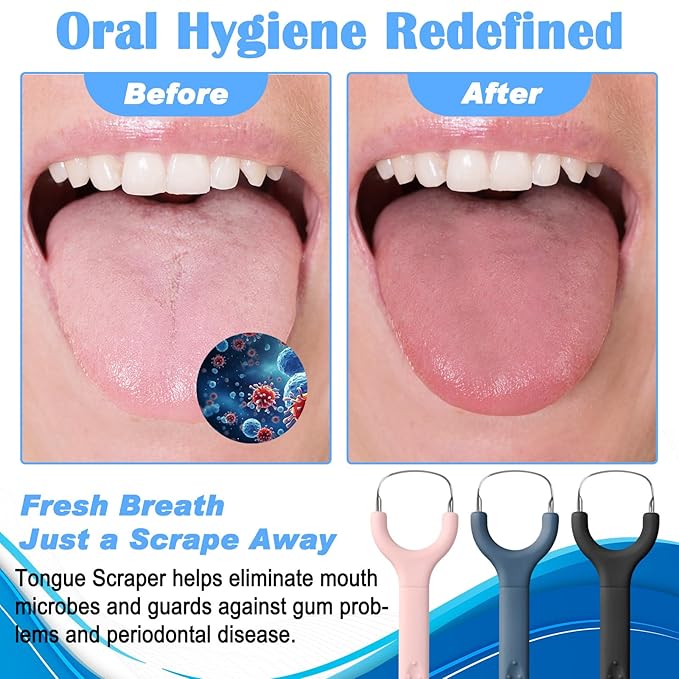 - 【Ransform Your Oral Hygiene】 Upgrade your routine with our 3 Pack Colorful Metal Tongue Scraper for Adults. This innovative tongue cleaner effectively tackles bad breath, ensuring a cleaner mouth and enhancing your confidence in any social setting. Say goodbye to unpleasant odors with our reliable tongue brush