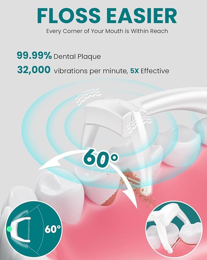 - Special Feature : Deep Clean -reach those tricky back molars without shoving your hand in your mouth, Easy Floss, Game-changer: 32,000 vibration & 5 speed settings,easy to glide anytime Deep Clean -reach those tricky back molars without shoving your hand in your mouth, Easy Floss, Game-changer: 32,000 vibration & 5 speed settings,easy to glid… See more