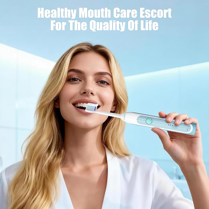 - [Premium Quality and Safety Materials]:Our brush heads are made with DuPont bristles that are safe for oral use. The bristles are soft and end-rounded to protect your gums from abrasion.This soft bristles provides a gentle yet thorough clean that effectively removes surface stains and improves gum health.