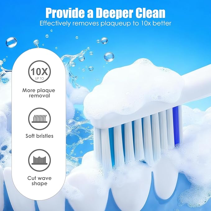 - [Effective Cleaning]:Our brush heads are specifically designed to work in harmony with the brush handle's high-frequency vibrations. They are rigorously tested to effectively remove up to 10x more stains than a manual toothbrush, ensuring a deep and thorough clean that generic heads may not replicate.