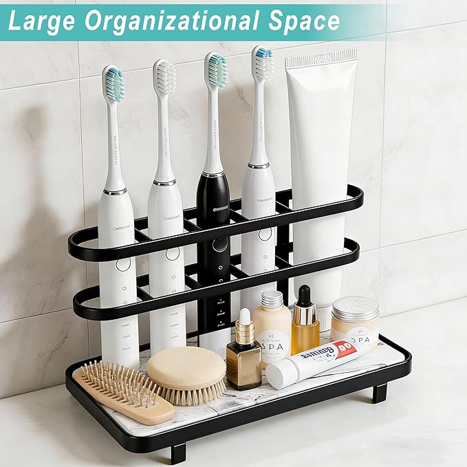 - Durable & Rustproof: Made of carbon steel, this toothbrush stand is resistant to bending, resistant to bending, and not easy. The waterproof bathroom organizer finish maintains its modern look, even in humid bathroom countertop environments.