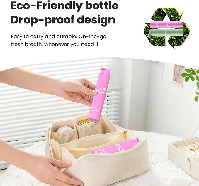 - Travel-Friendly and Earth-Conscious: Our toothpaste features a leak-proof, durable bottle in a perfectly portable size. Lightweight, drop-proof, and eco-friendly, it’s designed for the active life of frequent travelers, campers, and students. Take it anywhere and enjoy fresh breath without ever compromising on convenience or your commitment to sustainability