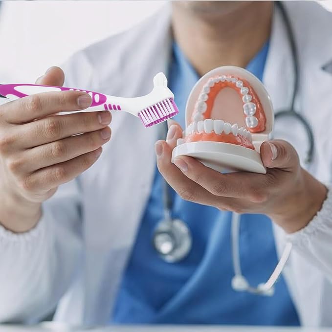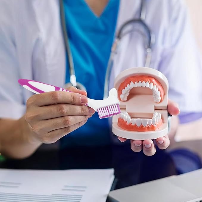 - Dual - Angled Design for Effective Cleaning: Our Denture brush features a dual - angled head that reaches all corners of your dentures for thorough cleaning. The multi - layered soft bristles of toothbrush cleaner gently remove plaque and food particles, ensuring your dentures stay clean and fresh. Whether you're at home or on the go, this dental brushes provides effective care for your false teeth.