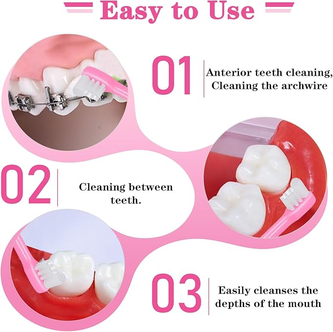 - Small Head Tufted Toothbrush: This small head tufted toothbrush is suitable for most people, from those with smaller mouths, those wearing braces, dentures for the elderly, children starting to lose their baby teeth, to those with crooked teeth and wisdom teeth