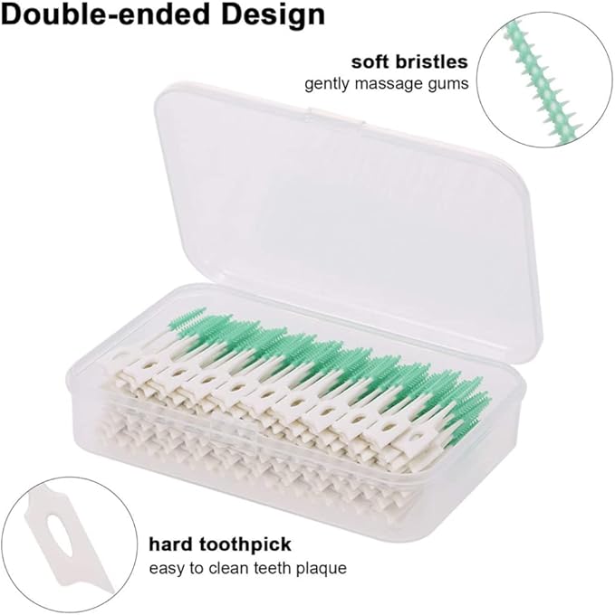 - Double-sided Design: double-sided design effectively removes food and plaque. easy to insert between the spaces and gently get between the teeth. Safe and smooth without damaging the gums. With the soft picks interdental brushes you can easily get into the tightest interdental spaces.