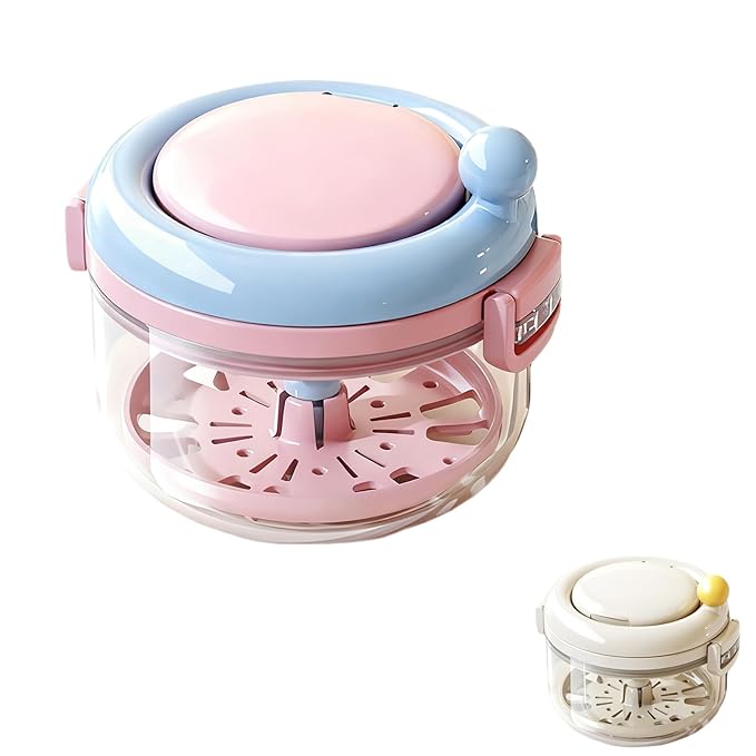 - Efficient Cleaning System: The bottom layer features a draining and filtering system. By rotating the handle on the lid, you can create centrifugal force to effectively clean your retainers or dentures. Adding effervescent tablets or cleaning solution enhances the cleaning process