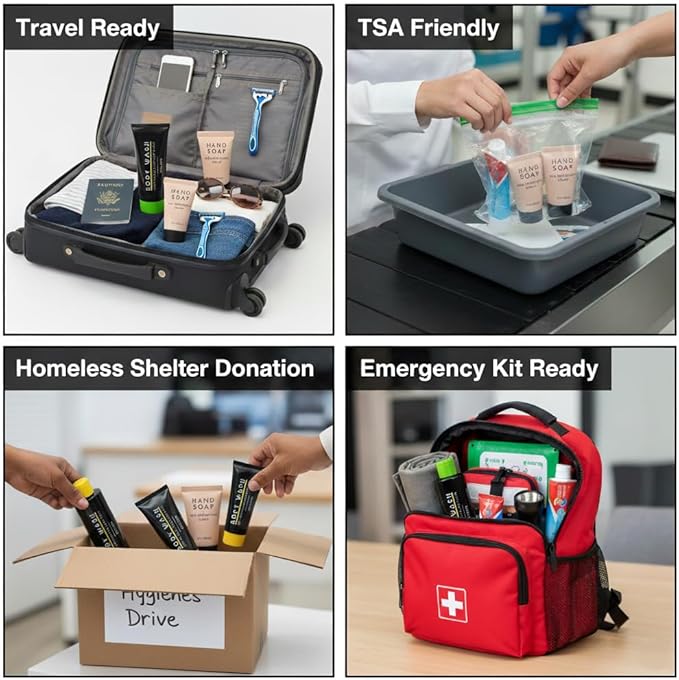 - TRAVEL SIZE BOTTLES OF TOOTHPASTE: Feel fresh and clean no matter when or where. Travel size toothpaste tubes can fit on sinks, in showers, in backpacks, duffelbags, knapsacks, cosmetic makeup bags and even in as much as a coat pocket for those in dire need, especially in charity donation and disaster relief programs.