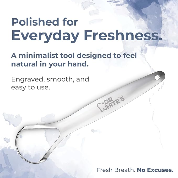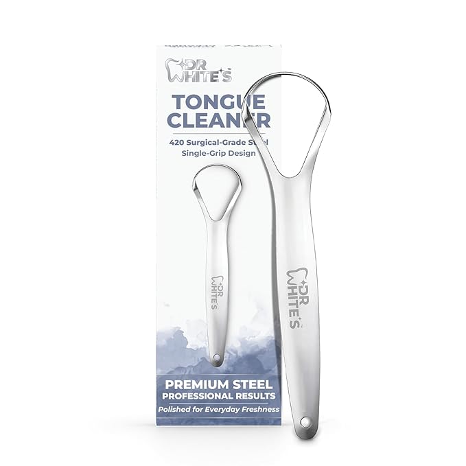 Dr. White’s Precision Tongue Care™ Collection – Single Grip Tongue Cleaner, Premium 420 Surgical-Grade Stainless Steel Tool for Daily Oral Care