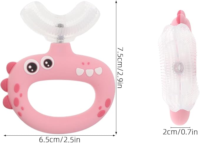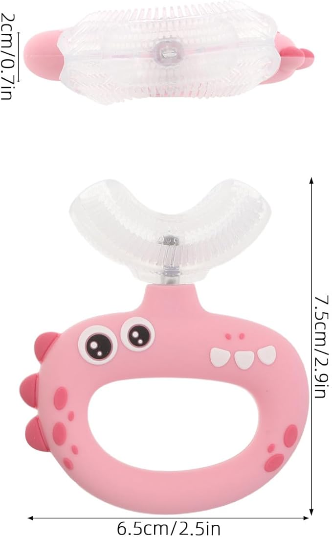 U Shaped Kids Toothbrush for Oral Care - 360° Rotating Silicone Head - Manual Self Brushing Toothbrush - Dinosaur Fun Brush for Ages 0-3 Kids Pink