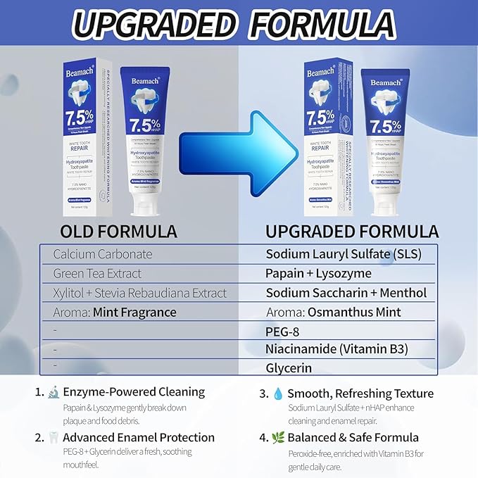 Beamach Hydroxyapatite Toothpaste, Nano 7.5% Hydroxyapatite Toothpaste, Whitening Tooth Repair, Protects Enamel and Strengthens Teeth, Fluoride-Free, Gentle Mint, Fresh Breath