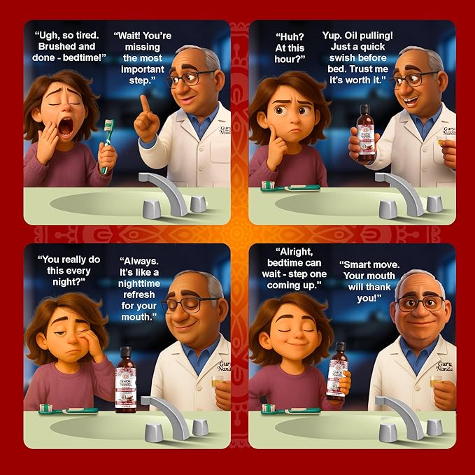 - AYURVEDIC TRADITION MEETS INNOVATION: Experience Ayurvedic oil pulling with GuruNanda Ashwagandha Oil Pulling Mouthwash blend, a natural oil and herb fusion that offers a modern, holistic approach to oral wellness. It comes in an 8 fl oz bottle & includes a tongue scraper and Butter on Gums toothbrush.