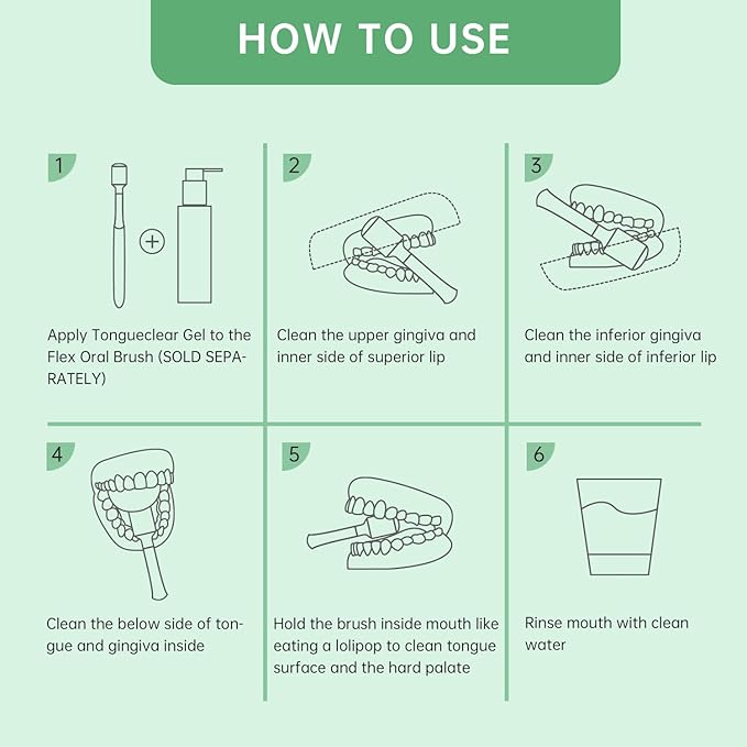 - EASY TO USE: Apply TONGUECLEAR gel to the surface of Tongueclear Flex Oral Brush (SOLD SEPARATELY). Put it onto the the oral area you would like to clean and gently brush back and forth, help to clean the entire mouth, effectively maintain a cleaner oral environment, which helps to remove dirt and leaves fresh feelings, a good helper to your daily oral care
